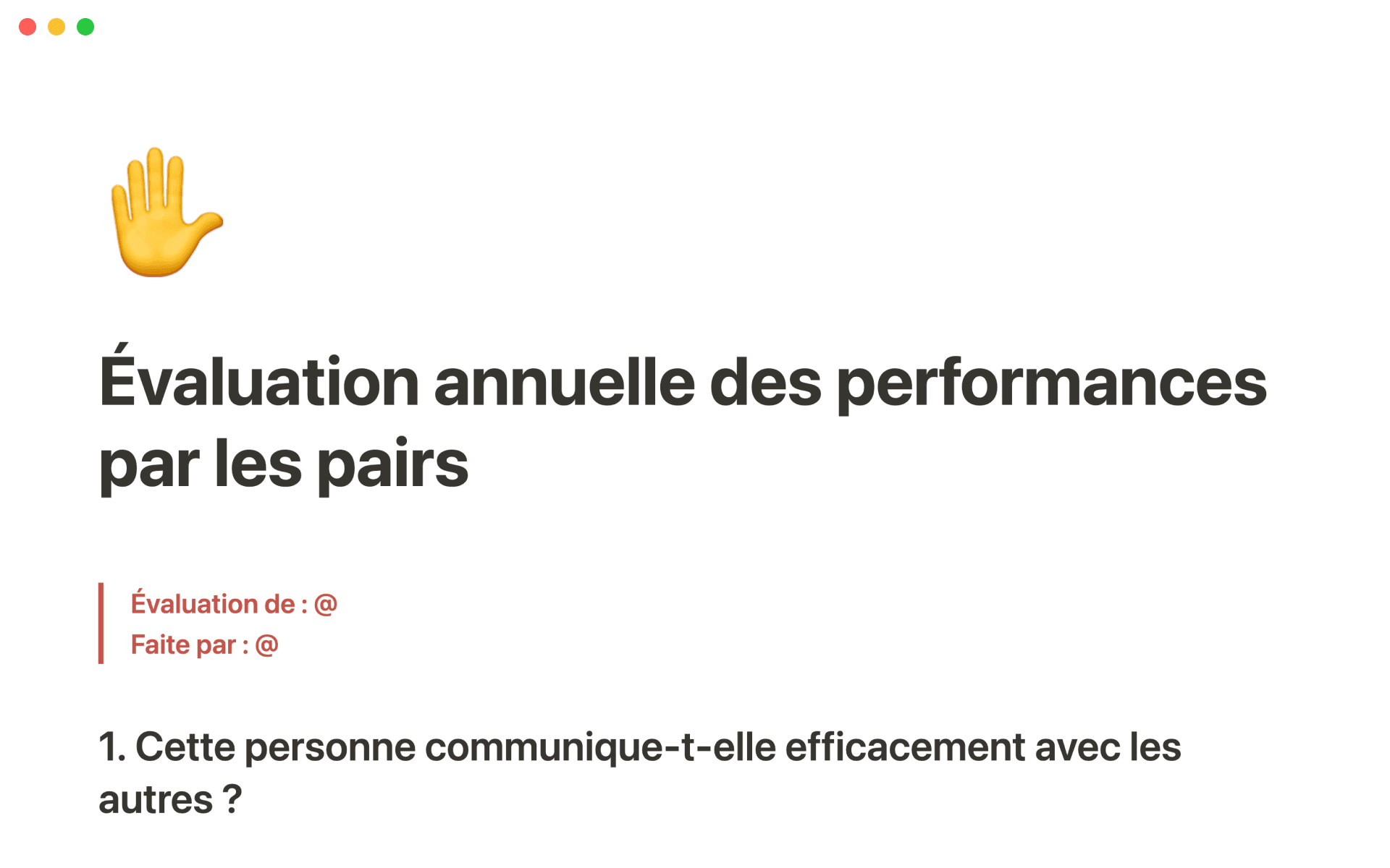 This template is perfect for collecting peer feedback as part of an annual performance review process. Keeping them in a private database will allow you to reference previous reviews each year, providing insight into progress over time.